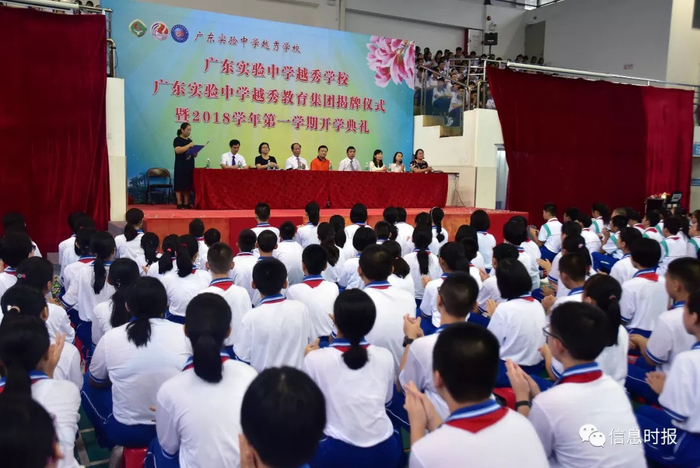 9月1日, 在四千多名全体师生的共同见证下,省教育厅、市教育局、越秀区政府的领导和校长们在广东实验中学越秀学校天胜校区共同为广东实验中学越秀学校(简称“省实越秀”)以及广东实验中学越秀教育集团揭牌,新成立的广东实验中学越秀学校迎来了新学期开学的第一天,如今越秀区学子们的教学资源又添一福利,在家门口前即可享受广东 实验中学的优质教育。