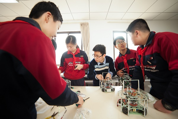 图说:校机器人社团为黄浦区优秀中学生社团,多次在全国大赛获奖