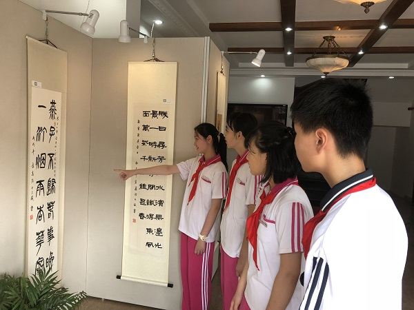 图说:男生袁嘉浩用一场个人书法展迎接新学期的到来 校方供图(下同)