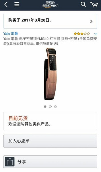 这次,亚马逊通知厂商,派维修人员上门,更换了一款同一型号的新锁。亚马逊客服告诉高小姐说,这个型号即将停产。