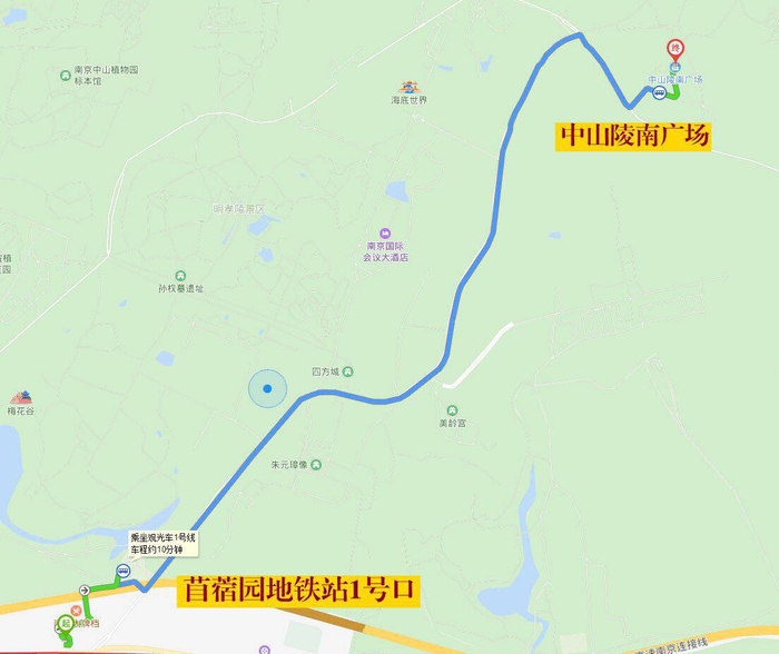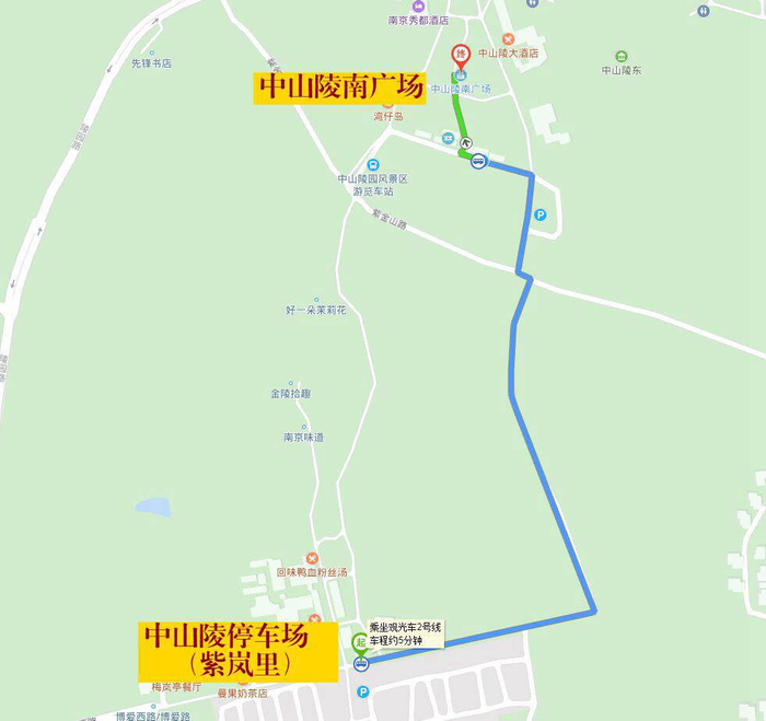到达景区后,车辆一律停放在中山陵停车场(紫岚里),可乘坐接驳车前往音乐台,也可由停车场步行经紫岚里街区木栈道(森林画廊)、中山陵南广场抵达音乐台。