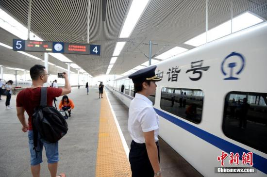 中新社福州9月23日电 (闫旭)23日,随着广深港高铁开通,福州到香港直达高铁首发,“港澳万人游福州”系列活动启动。