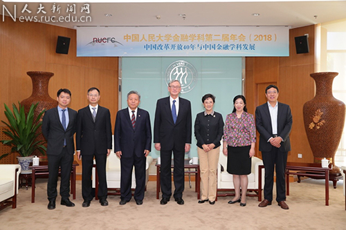 财政金融学院院长庄毓敏,科研处处长严金明,财政金融学院副院长赵锡军,重阳金融研究院执行院长王文参加会见。