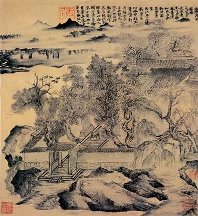 明代沈周、文征明、唐寅等吴门画家继承了元代文人画方式,题诗题款延伸画意、点醒画境。