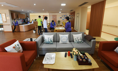 “朗诗常青藤”打造的是“精致产品,亲情服务”理念。招聘的护理员年龄都在二十岁左右,而且都要经过严格的培训和考试,具备介护士资质后才能上岗。