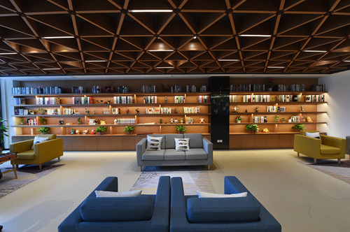 上午9:30,20几位老人陆续到场,精致茶点一字排开,色彩明艳的大厅开阔亮堂,巨大的书架上,放着各类图书及一些精致好看的工艺品,一些早到者坐在舒适的沙发上看起书来,让每一个踏进大厅的人都感觉心情畅快不少。记者进门时,被要求穿上鞋套并且对双手喷洒消毒液。