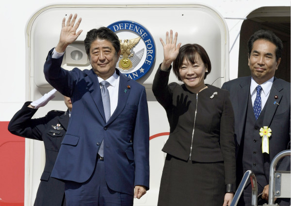 图说:10月25日,日本首相安倍晋三与夫人安倍昭惠在羽田国际机场登机,前往中国访问。图片来源:视觉中国