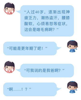 以上是上海中医药大学附属龙华医院泌尿科郁超副主任医师在青少年教育时偶尔听到的一则对话,却也很有代表性,“更年期不是只有女性才有的吗?”,“男性也有更年期吗?”,“男的更年期是否很难好啊?”诸如此类的疑问,一直在普通大众头脑中闪现,男性更年期到底是什么呢?