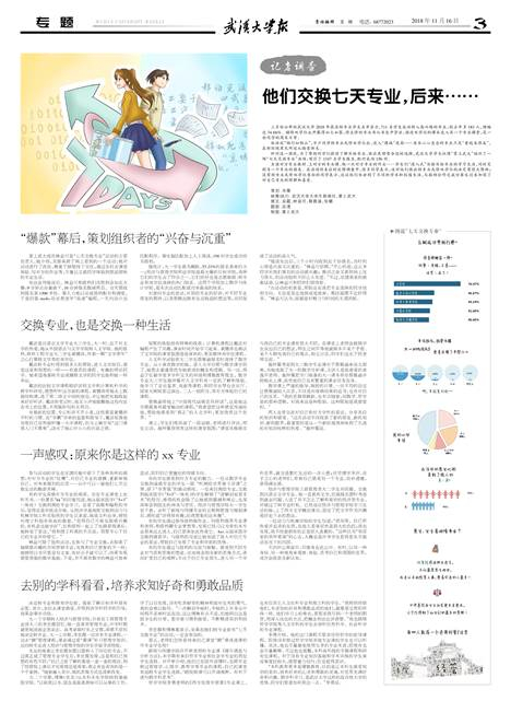 针对这一困扰,为了帮助同学们提前了解目标专业,做出更理智合适的选择,武汉大学学生社团“掌上武大”组织了一场“七天交换专业”活动,吸引了1347名学生报名,配对成功156对。