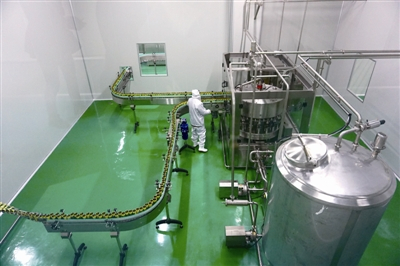 一排排空罐沿着生产线依次进入工人正操作的机器,公司领先的刺梨生产工艺得以最大限度地保持刺梨的原汁原味和营养成分。