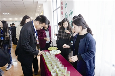 参观者品尝绵密浓稠的石斛汁