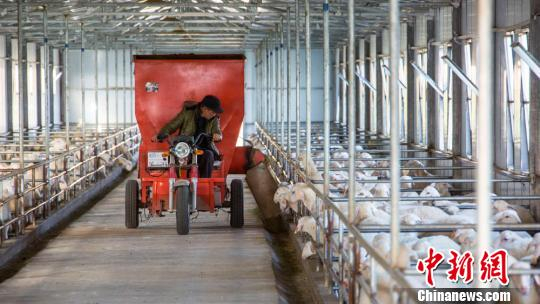 庆阳市采取“公司+基地+农户”“公司+合作社”的模式,解决了分散经营的传统畜牧业模式不适应现代农业发展需要的问题。图为现代化肉羊养殖现场。(资料图) 张永鑫 摄