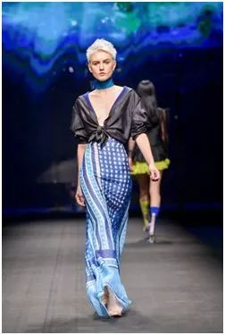 “中国十佳设计师”、华南农业大学艺术学院院长金憓教授团队携“香云故里·金憓”2019春夏系列,从“‘非遗’遇见’非遗’”、“奢华遇见纯朴”、“传统遇见科技”等三个方面展现了不同民族文化、不同传统技艺、不同时代脉络的碰撞与融合,展现了香云纱古典韵味和现代艺术的撞击。
