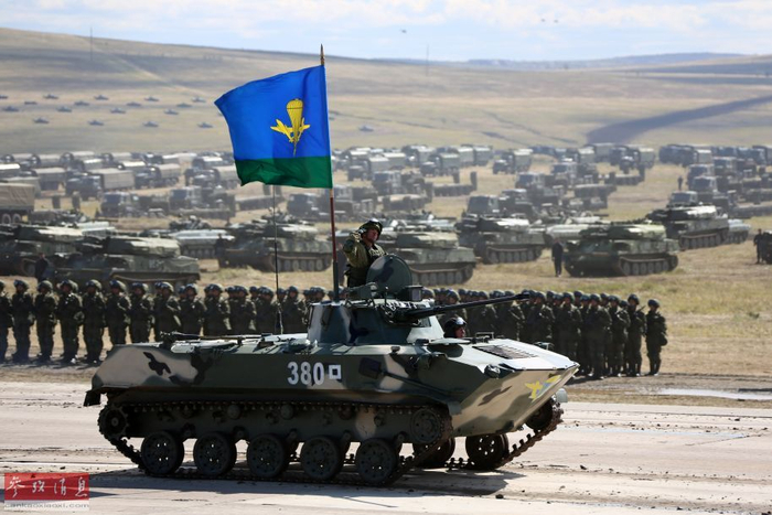 资料图:在俄罗斯楚戈尔训练场,“东方-2018”战略演习实兵演练结束后举行沙场检阅。这是俄方装甲车辆方队通过阅兵场。(新华社记者 李祥辉摄)