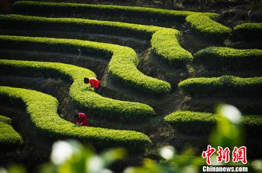 图为采茶。 李洪元 摄