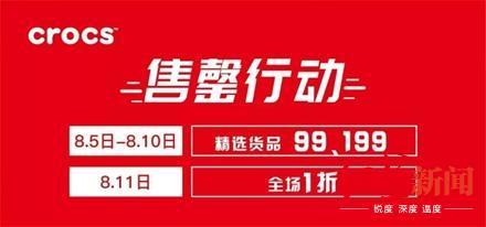 每次来奥莱都忍不住“血拼"一场!在时代奥莱的二楼crocs门店,精选货品售罄活动进行中,8月11日全场1折。折扣商品数量有限,售完即止。