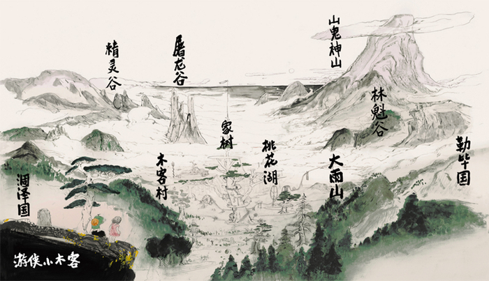 当他想要创造一个幻想世界,“桃花源”这个词立刻冒了出来,这是中国人共知的一个理想家园。