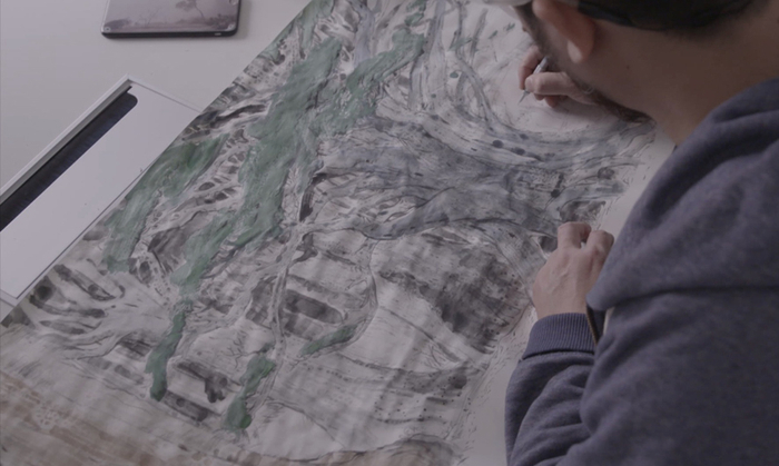 这次创作还结合了他擅长的“中国风”,他用水墨和矿物颜料作画,力求获得古典风韵和中式审美。