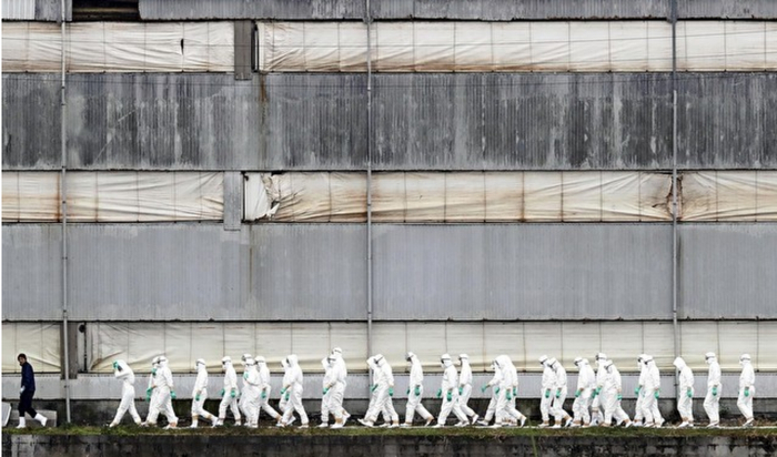 身穿白色防护服的防疫人员在非洲猪瘟疫情爆发农场进行处理(图据日本雅虎新闻特刊)