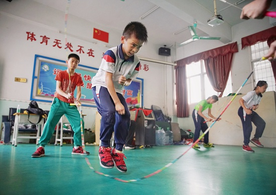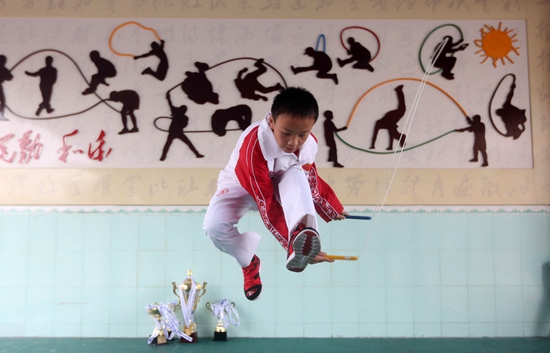 在国际跳绳界,这所连体育器械都不完备的中国农村小学具有相当的统治力。一个月前,在挪威举行的跳绳世界杯赛上,这里走出的17个孩子,在与来自26个国家和地区的选手竞争后,夺取了全部金牌的六分之一。自7年前推广跳绳以来,这所学校的学生改写了几项世界纪录,拿回的奖牌可以装满40多个书包。