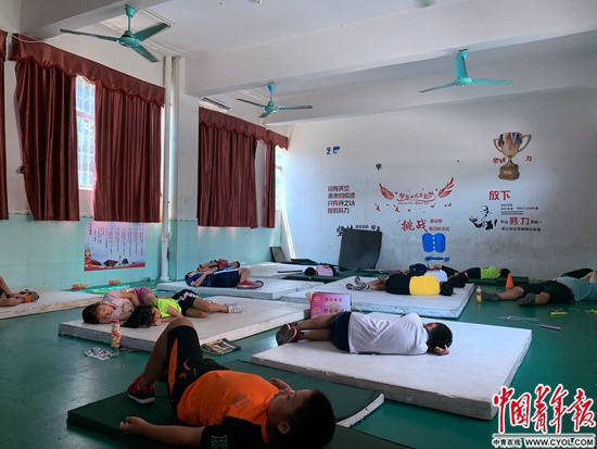 在国内外各种大赛中,他们总是能在赛场找到空地躺下休息。这个习惯是在学校养成的:他们直接枕着软垫,席地而卧,快速进入午睡。
