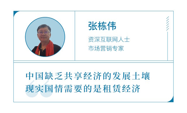 真正意义上共享经济的前提是“资产冗余”,也就是有闲置资产需要盘活,但当前中国老百姓并没有什么闲置的资产需要盘活,经济还没有发展到那个程度,没有产出共享经济的土壤,恰恰现实国情需要的是租赁经济。