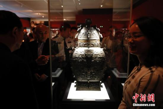 图为观众参观青铜皿方罍(商代,湖南省博物馆藏)。 中新社记者 杜洋 摄