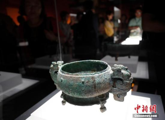 图为观众参观范季融捐赠青铜器文物。 中新社记者 杜洋 摄