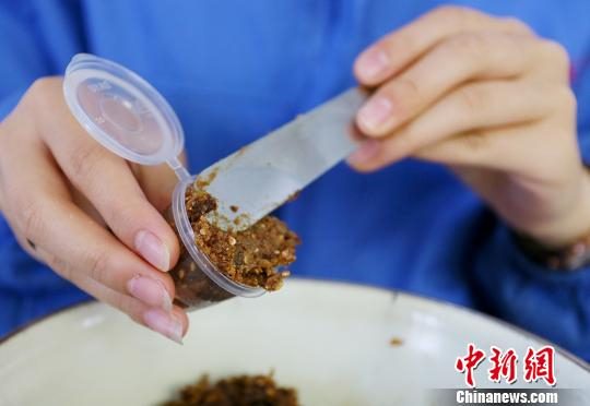 图为技术人员正在手工包装玫瑰蜂蜜。 高展 摄