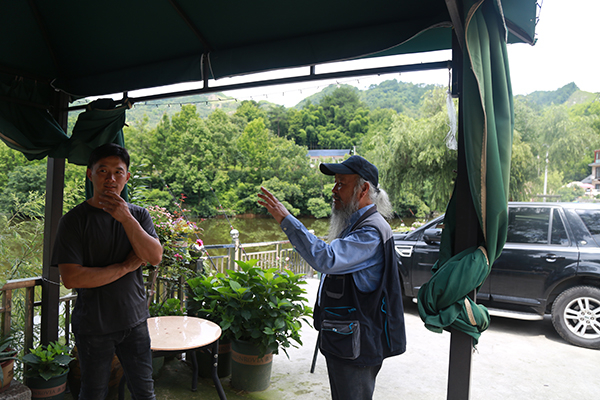 喻永飞在向浙江客人请教。他家的农家乐特殊之处在于差异化发展,从不接团,空窗期时用了2个月在浙江跑,学习山那边的经验。