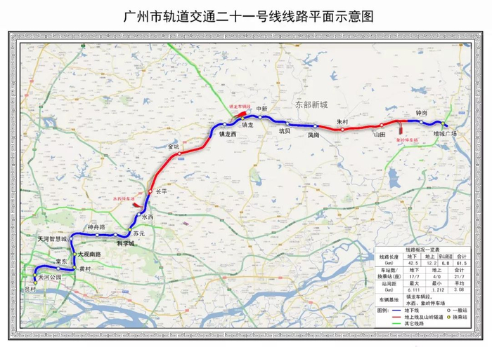 21号线全线通车后,将大大缩短知识城、增城往来市区的时空距离。目前的镇龙西至增城广场段不能直接进入市区,需要先绕行知识城线、14号线,从增城广场到珠江新城耗时超过2个小时。全线开通后,增城到珠江新城只需在员村换乘1次,节省大半个小时。