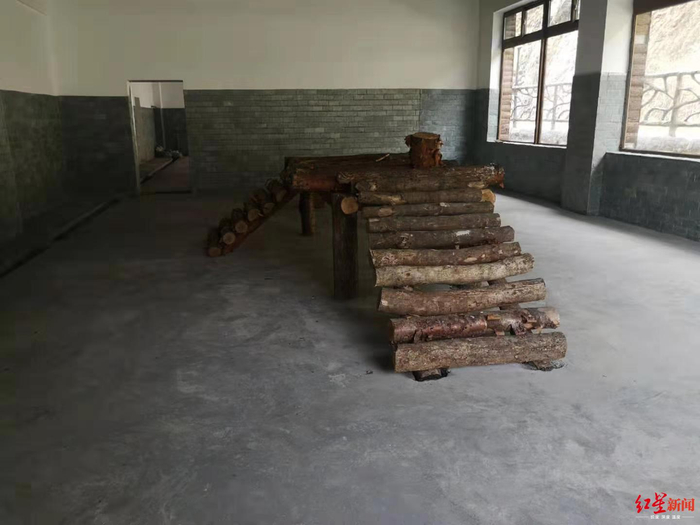室外活动区,有一片宽阔的空地,还有一块大草坪,上面配备了泳池,多层木床、玩具等,“这个圆木枕,就是熊猫躺着晒太阳时用的枕头,如果它用着不舒服,我们还会调整大小。”吴晓平说。