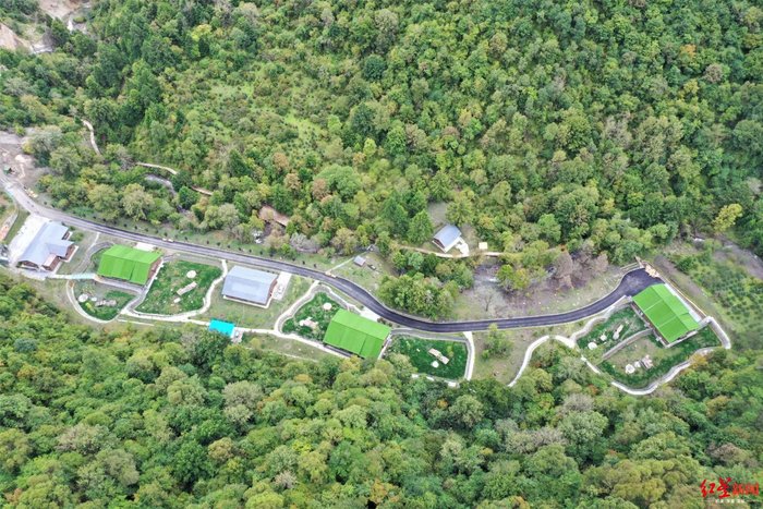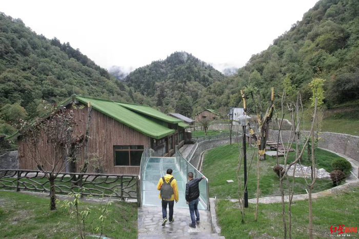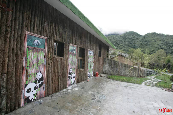 距离甲勿海下方一公里处,树木掩映的峡谷里,五栋房子依次排开,三栋绿色屋顶的房子尤为醒目,这是全新打造的生态、温馨的大熊猫“民宿”。