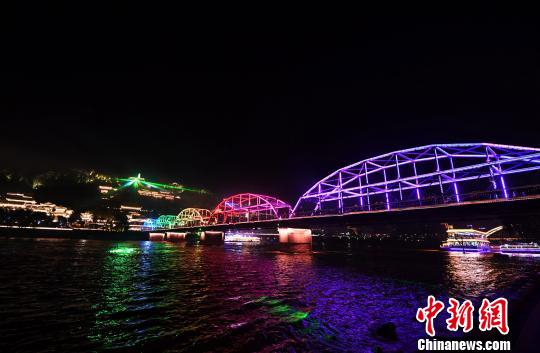 原标题:精致兰州:彩桥“交响”夜色美 黄河之滨游人织