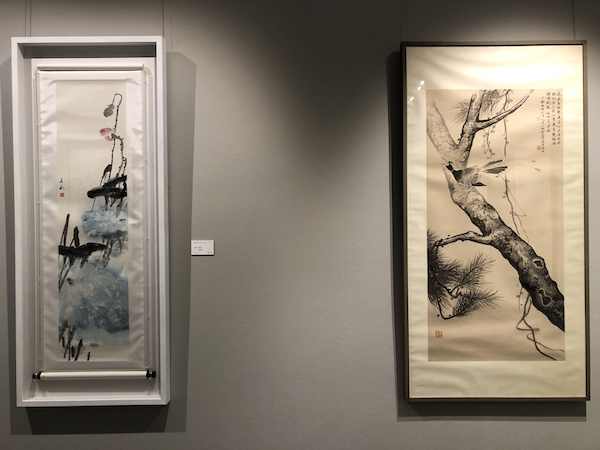 其中薛永年的作品为纯水墨写意蝴蝶兰画作,笔致清雅,学者气足;刘曦林的写意水仙花卉《洛川神》以草书题跋,笔简意浓;陈佩秋的青绿山水色彩浓丽,画面积翠,并有着大量西画中的光色表现技巧。