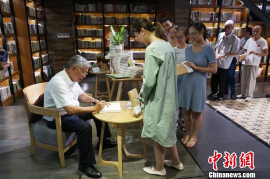 方志专家、作家、广西师范大学客座教授,《唐景崧传》作者文崇礼为读者签名。 欧惠兰 摄