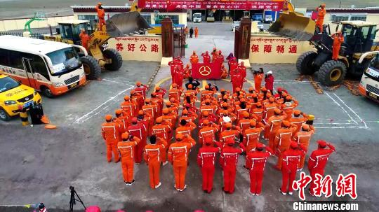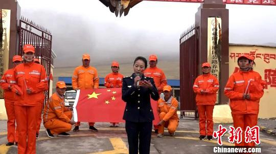 图为西藏阿里国省公路接管组一线护路人在巴札一工区开展新中国成立70周年庆祝活动。 贡桑拉姆 摄