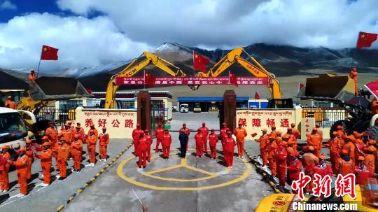 图为西藏阿里国省公路接管组干部职工及一线护路人宣誓“两路精神”。 洛桑益西 摄
