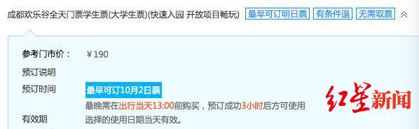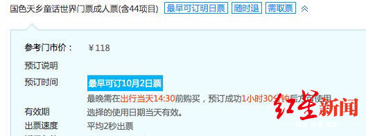 此外,在携程平台上国色天香通话世界门票成人票(含44项目)预订成功1小时30分后方可使用;成都欢乐谷全天门票学生票“预订成功后3小时方可使用”;成都天台山门票“预订成功4小时后方可使用”。