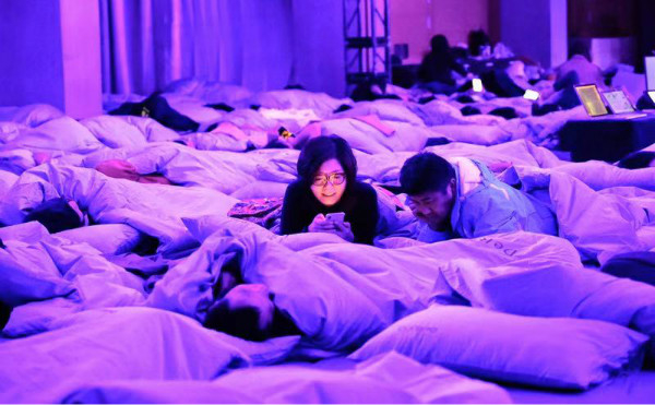 演出当晚凌晨2点左右,现场不少观众都已酣眠,个别床铺上还亮着星星点点的手机光亮。