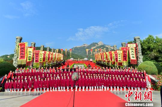 10月13日,国泰民安 共谋发展”2019海峡两岸敬天祈福盛典在泰山脚下举行。整场仪式以古礼为尊,祭拜天地,祈福苍生。 许洪业 摄