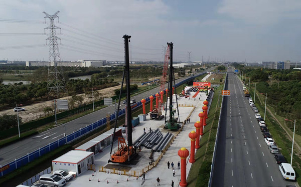 图说:两港大道快速化先行启动工程开工仪式今日举行 新民晚报首席记者 刘歆 摄