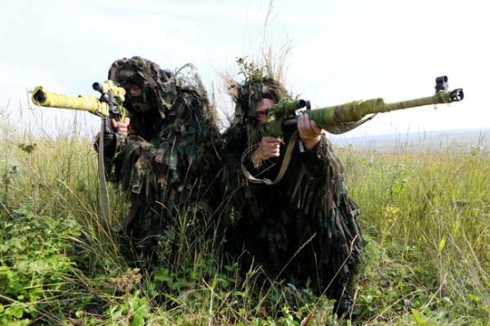 资料图片:“和平使命―2013”中俄联合反恐军事演习,俄方狙击手搜索目标准备射击。新华社发(线云强-摄)