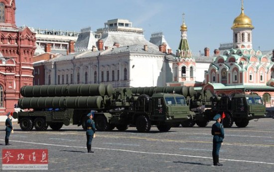 2013年5月9日,在俄罗斯举行的庆祝卫国战争胜利68周年阅兵式上,俄军S-400导弹发射车驶过红场。(资料图片)