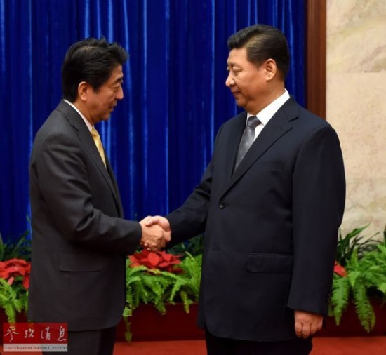 继8月举行日本安倍政府上台以来的首次中日外长会谈后,两国又于11月初达成四点原则共识,终于促成日本首相安倍晋三与中国国家主席习近平11月10日在北京会晤,确认了发展战略互惠关系以改善中日关系的必要性。这也是两人首次举行首脑会晤。安倍评价会谈意义称,这是回到中日战略互惠关系的原点、改善关系的第一步。习近平也表示今后愿意努力逐步改善关系。该会晤后,韩国总统朴槿惠也对实现日中韩三国首脑会谈表现出积极态度。