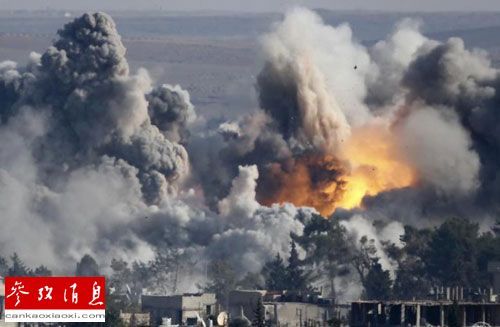 10月18日,以美国主导的空中力量对叙利亚科巴尼境内的“伊斯兰国”极端组织进行轰炸,现场浓烟滚滚。(路透社)