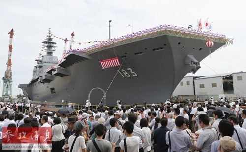针对现在中国不断增强的国防力量,日本将于3月25日举行“出云”号下水式。据报道,“出云”号可实现5架侦察直升机同时起降,以强化对中国潜艇的警戒和监视。
