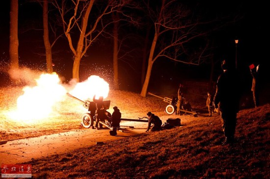 资料图片:加里宁格勒的俄罗斯炮兵部队开炮庆祝“祖国保卫者”日。