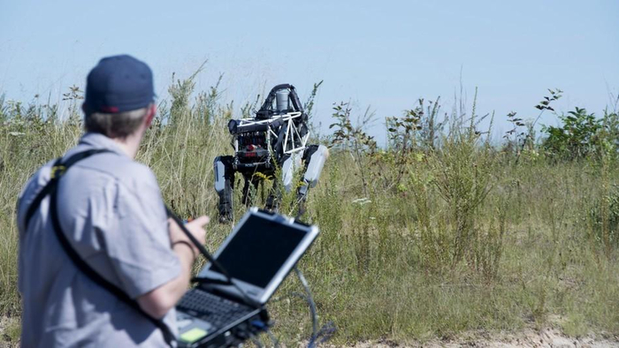 操作员测试“大狗”机器人。