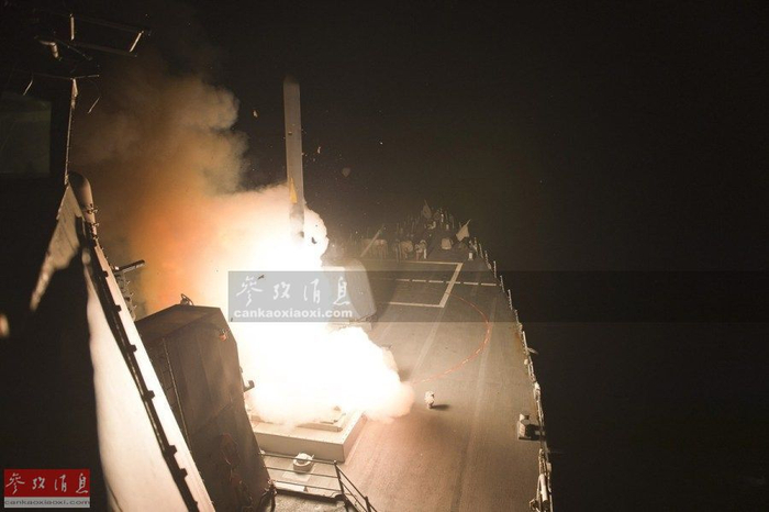 图为2014年9月23日,美海军战舰从红海向叙境内的恐怖组织目标发射“战斧”巡航导弹。